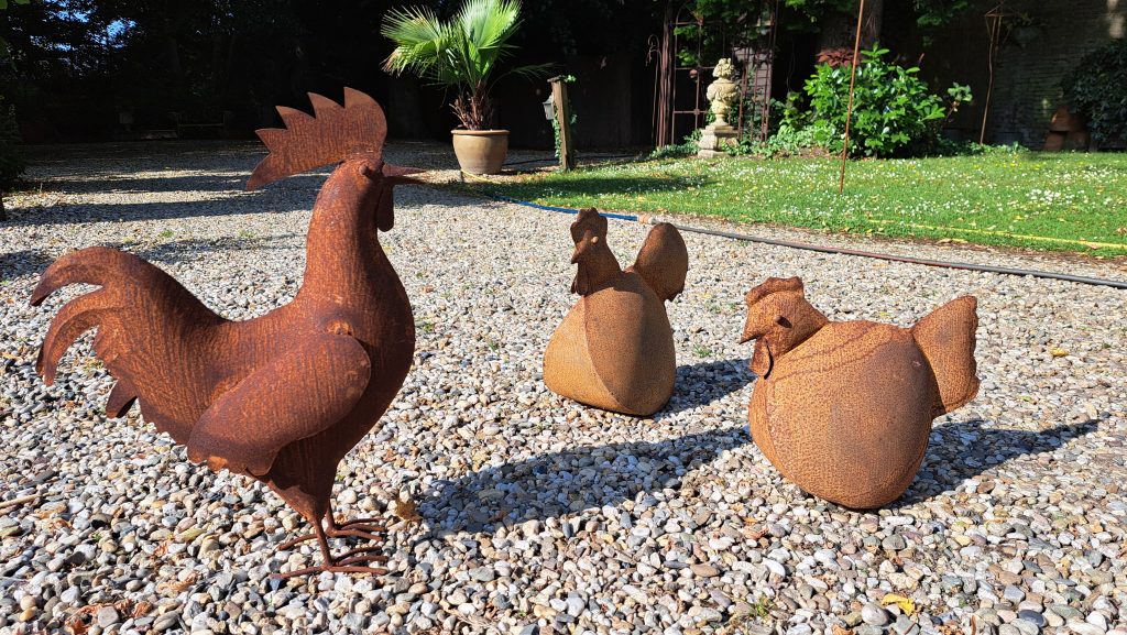 Scharrelkippen € 29.50 met oplettend haantje € 44.50 hoogte 46 cm
