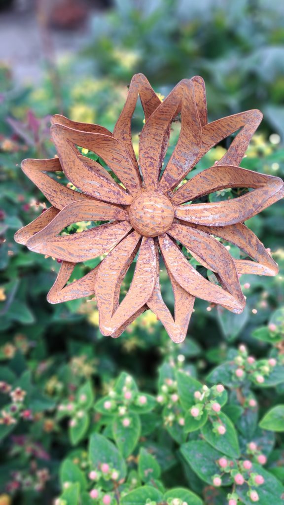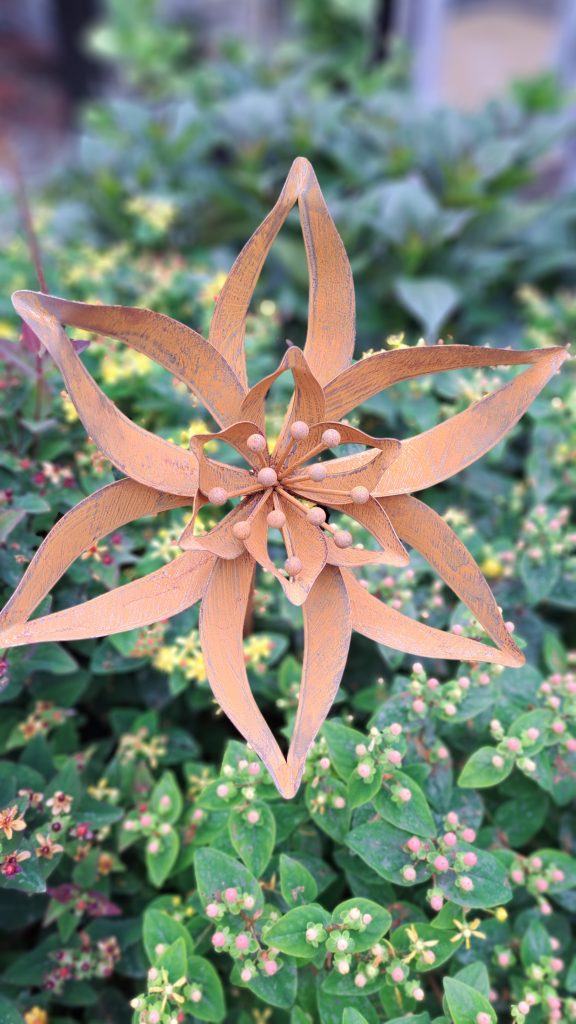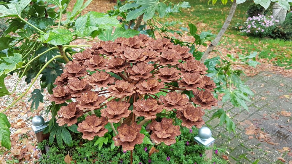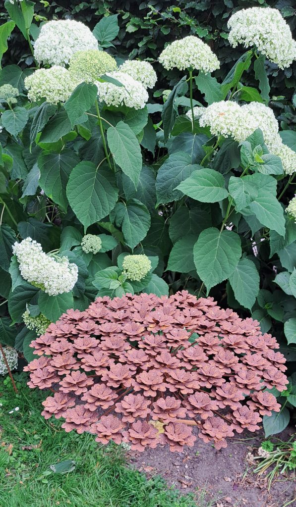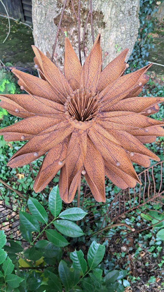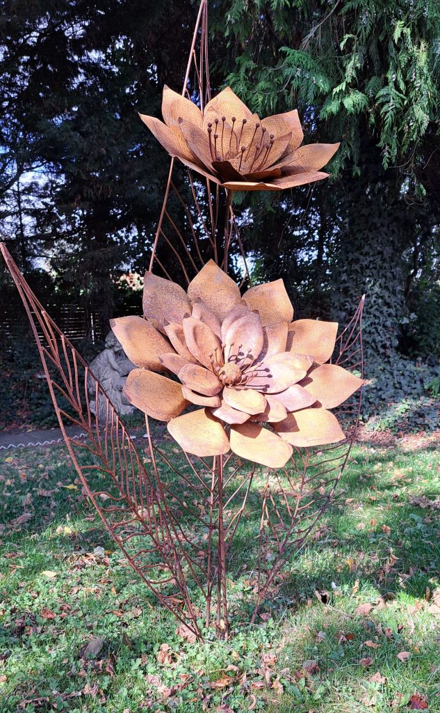 Indrukwekkend object van 1 groot- en 2 kleine bladeren met prachtige bloem (boven) 706 dia 45 cm € 59.50 en onder bloem 705 dia 52 cm € 69.50
